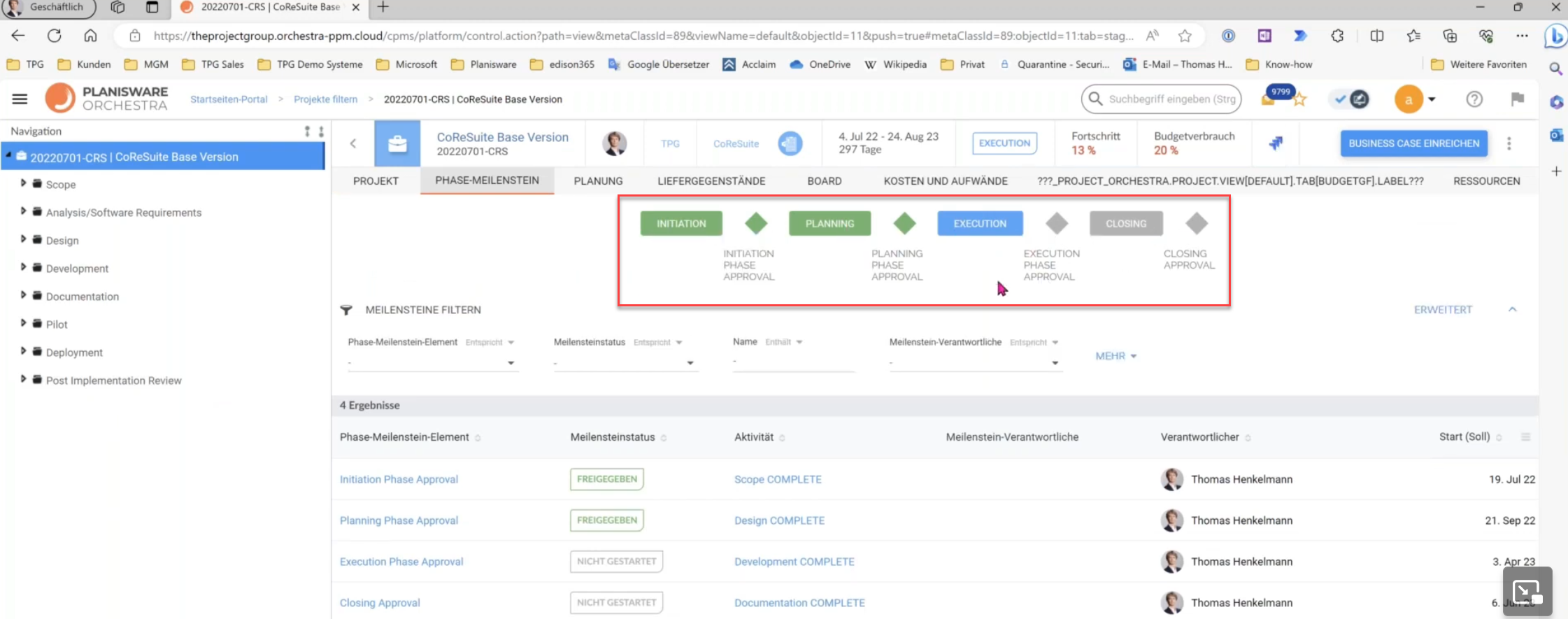 Projekt archivieren: Ist ein Projekt abgeschlossen, so kann es noch für eine gewissen Zeit in der Liste verbleiben. So können Sie z.B. noch auf die Lessond Learned zugreifen. Hierfür ist eine Regel zu finden. Irgendwann sollte aber zwecks Übersichtlichkeit eine Bereinigung durch Archivierung stattfinden.