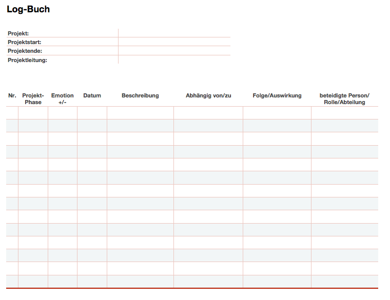 Um die Informationssammlung einfacher zu gestalten, ist ein sogenanntes Log-Buch hilfreich. Dort können Sie und Ihr Team die Begebenheiten aus dem Projekt notieren. Dies muss nicht detailliert erfolgen, sollte dennoch die Situation kurz widerspiegeln.