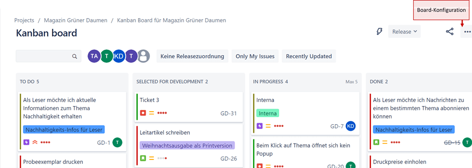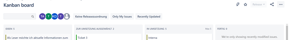 In vielen Fällen können Sie Änderungen aber auch einfach mithilfe von Storys auf einem Kanban-Board betrachten und verfolgen. Dann lassen sie sich nach Genehmigung schnell in die Umsetzung bringen.