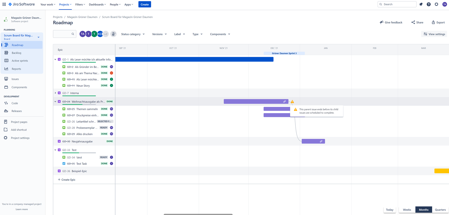 Tipp 2: Jira-Dashboards und Roadmaps für bessere Übersicht