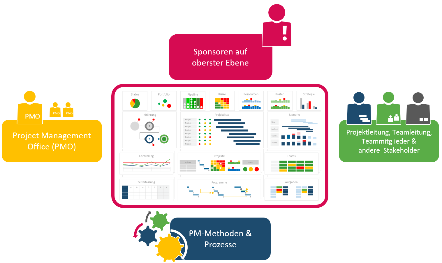 Unser Praxis-Tipp: Stellen Sie sicher, dass Sie die aktive Unterstützung eines Sponsors auf oberster Ebene gewinnen. Dieser Sponsor sollte die Ziele und den Nutzen des PPM-Tools klar und deutlich im gesamten Unternehmen kommunizieren und als Vorbild für die Nutzung des Systems vorangehen.