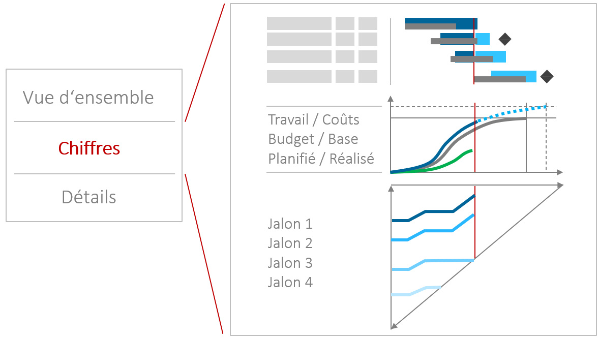 - Lors de la planification de projets individuels, le chef de projet utilise le rapport d’avancement, la structure de division du travail (WBS), une vue d’ensemble des jalons ou encore une analyse de la tendance des jalons.