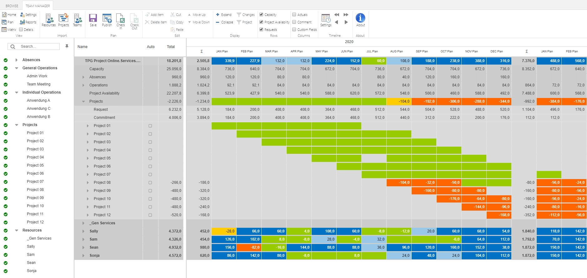 - Les chefs d’équipe sont responsables de leurs ressources. Pour cela, ils ont besoin de vues d’ensemble de la charge de travail et de la disponibilité de leurs équipes. De plus, ils doivent pouvoir faire des engagements de ressources fiables aux chefs de projets.