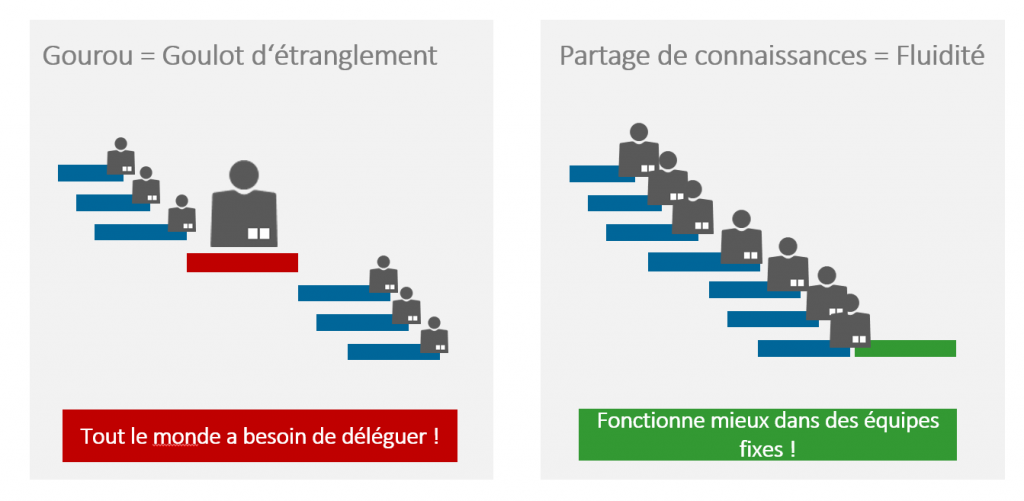 Toutefois, cela ne fonctionnera que si vous partagez réellement les connaissances. Ce n’est donc pas le nombre réel de personnes qui pose problème, mais les goulots d’étranglement pour certaines compétences.