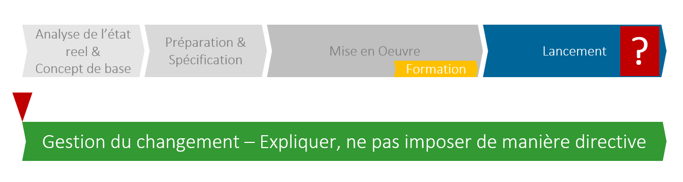 Notre conseil : Dans les projets de changement, veillez dès le départ à ce que les personnes concernées par les changements soient correctement préparées et assistées.