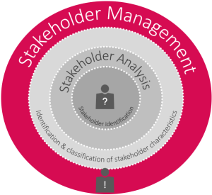 Tout d’abord, la figure ci-dessous vise à illustrer la relation entre les termes de gestion des parties prenantes, d’identification des parties prenantes et d’analyse des parties prenantes tels qu’ils sont conçus dans cet article :
