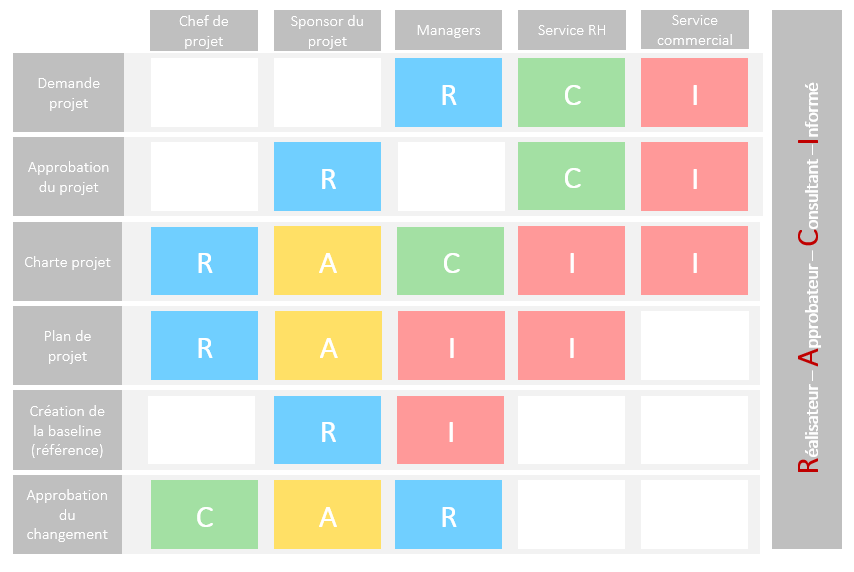 La matrice ci-dessous d’attribution des responsabilités en est un bon exemple.