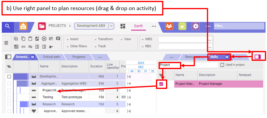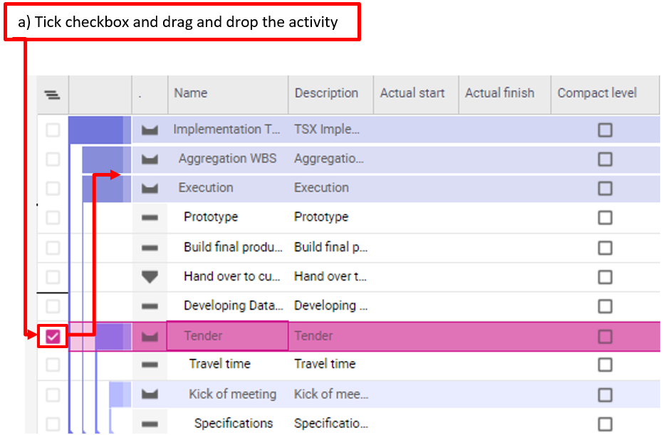 Planisware Enterprise vous offre la possibilité de structurer votre plan de projet en déplaçant des activités, en décrémentant ou incrémentant des activités et en transformant des éléments WBS en tâches et inversement.