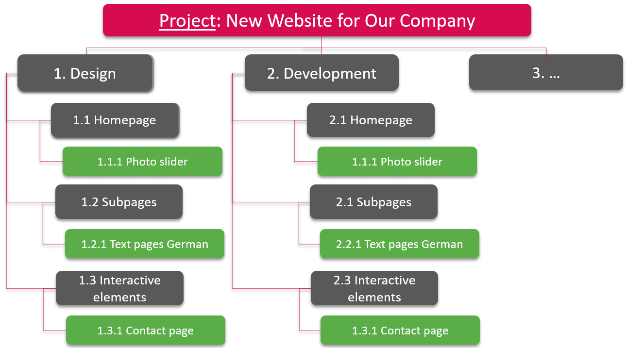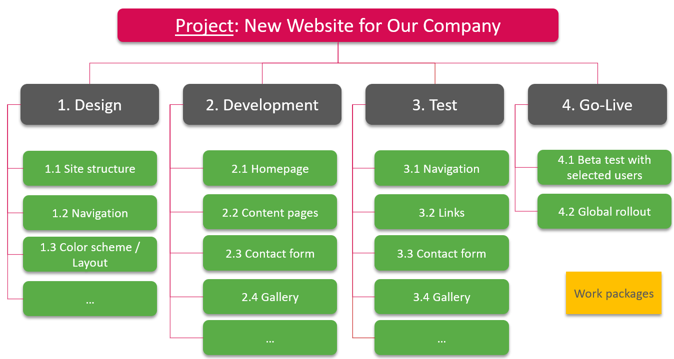 In smaller projects, at least graphical work breakdown structures are less frequent. In this case, they would often be administrative overkill. Still, every project needs to be structured neatly – irrespective of the presentation.
