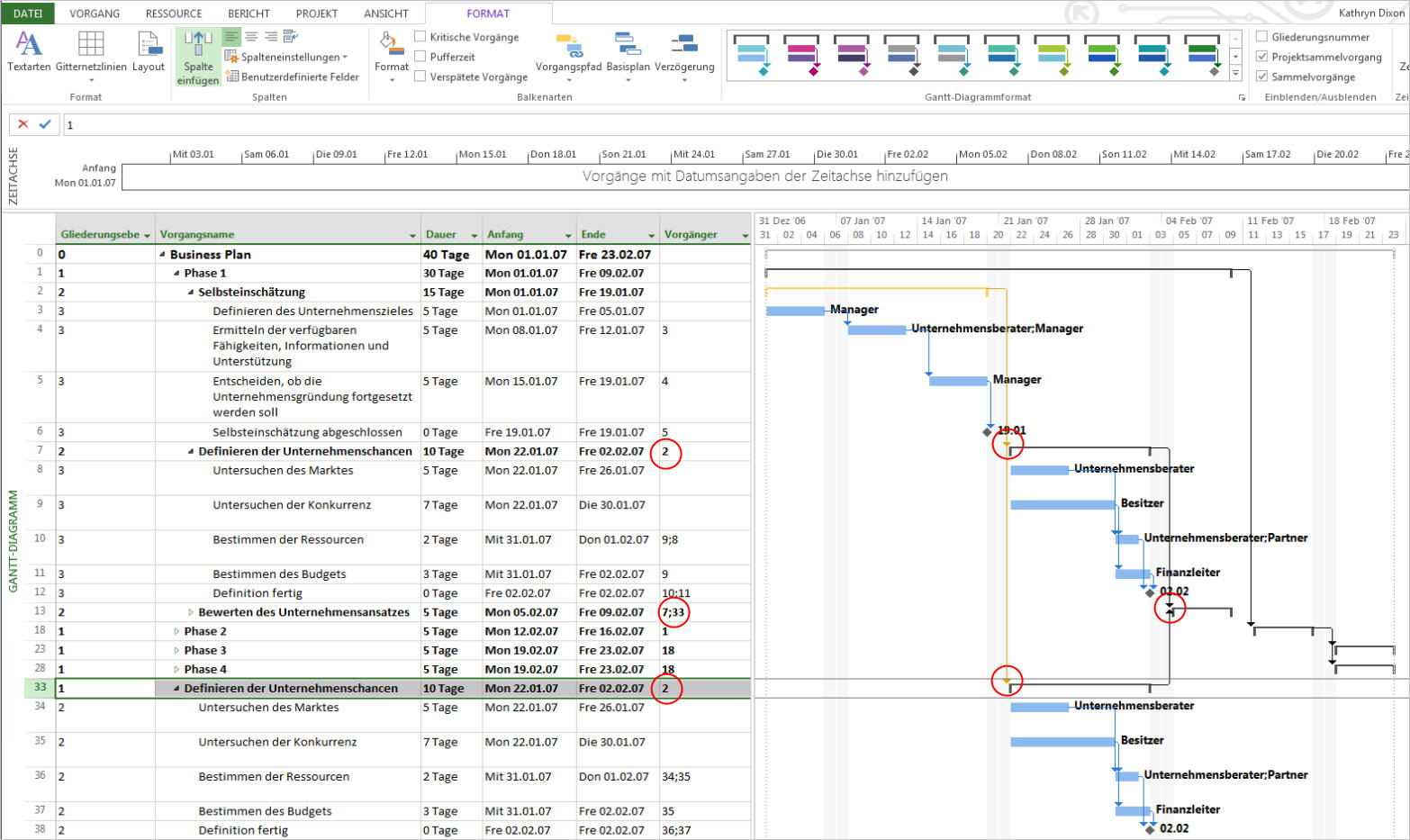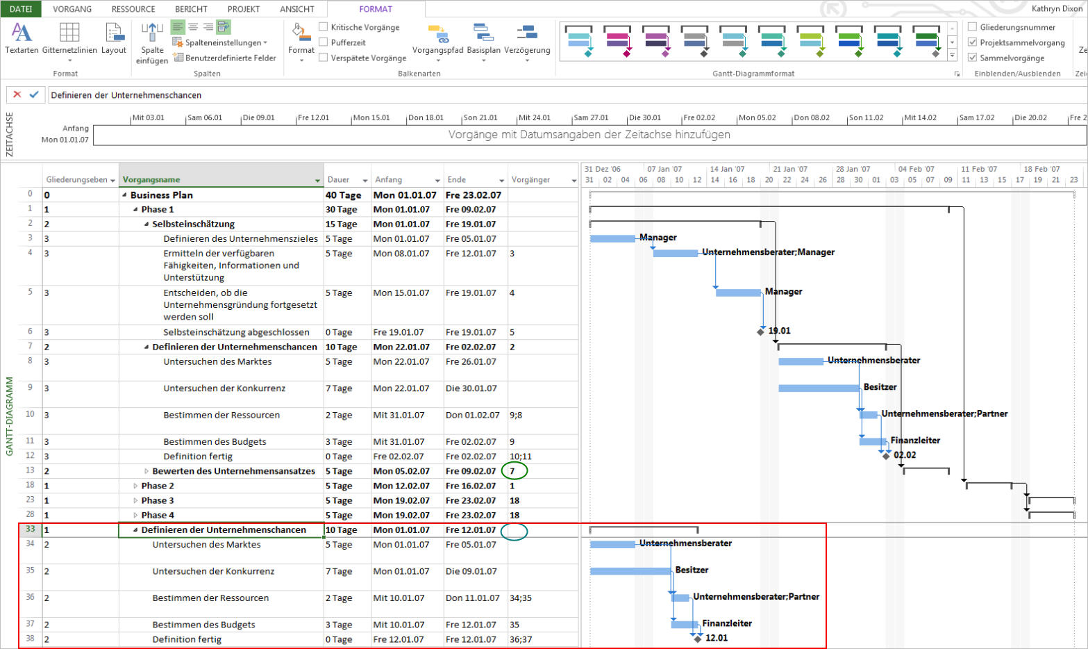 Das ist immer der Fall, wenn Vorgänge oder Sammelvorgänge samt Teilvorgängen kopiert und an eine andere Stelle im Plan oder in einen neuen Plan eingefügt werden. Dies kann lästig sein.
