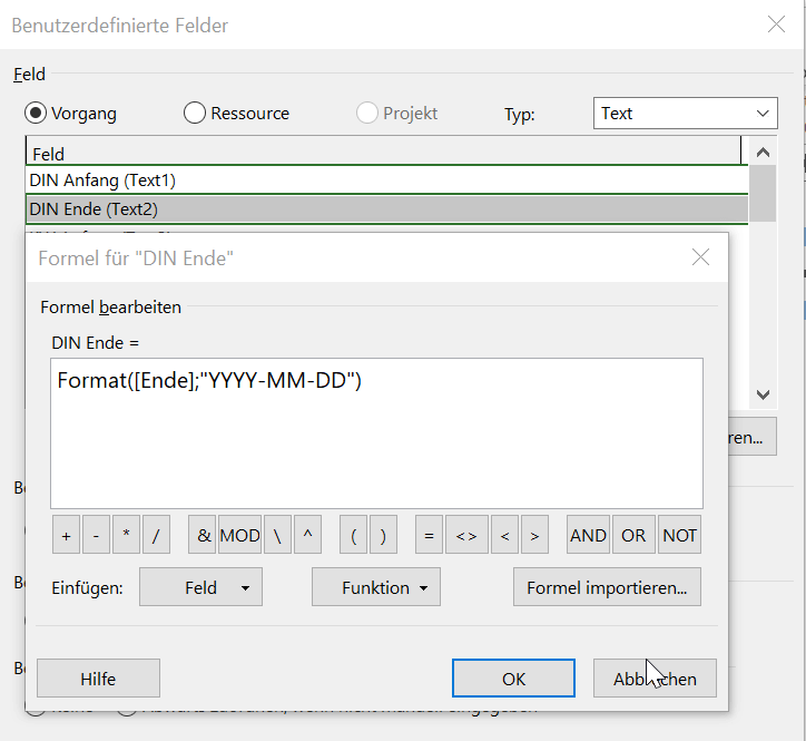 Mit dieser „Formel“ wird der Anfang eines Vorgangs jetzt im Format YYYY(Jahr)-MM(Monat)-DD(Tag) dargestellt (englische Bezeichnungen nur in der Formel).