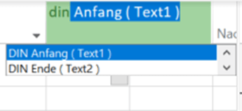 Die benutzerdefinierten Felder können Sie unter dem ursprünglichen Namen („Text1“, „Text2“) oder über „DIN Anfang“ bzw. „DIN Ende“ aus der Liste auswählen.