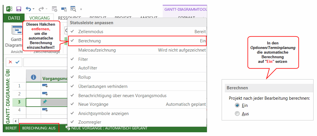- oder in den Optionen/Terminplanung/Berechnung „ein“ auswählen.