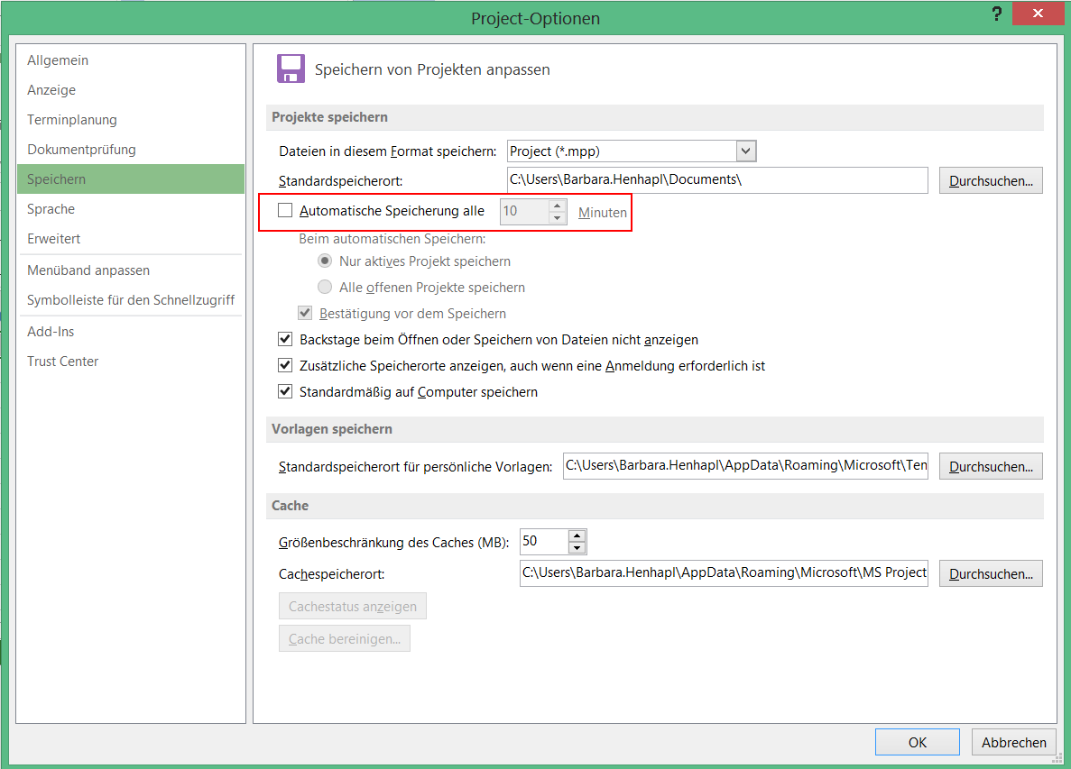 - Automatisch Speichern in MS Project aktivieren