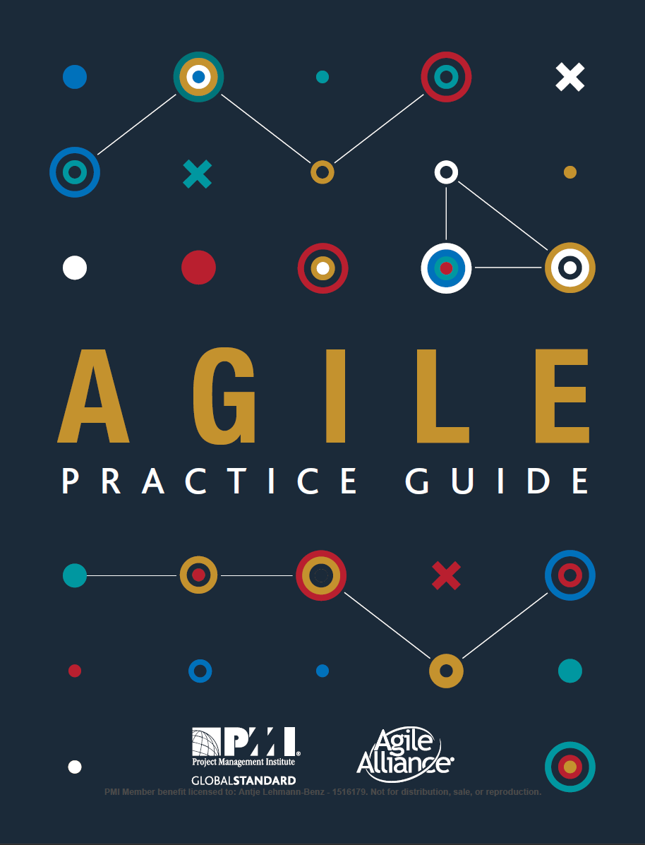 Zusätzlich empfehlenswert: Der PMBOK® Guide in der aktuellen 7. Ausgabe (zumindest grobe Kenntnis empfohlen) als Bundle mit dem „Agile Practice Guide“. Der Download ist für PMI Mitglieder kostenlos.