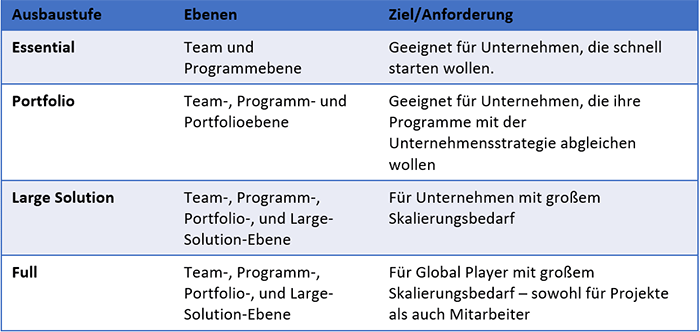 Die Ausbaustufen von SAFe
