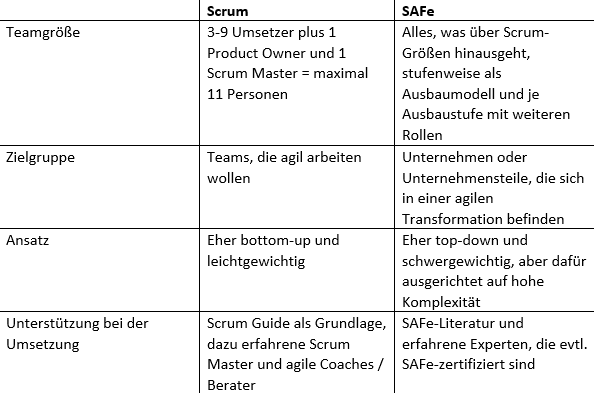 Auf einen Blick: Was unterscheidet Scrum von SAFe?