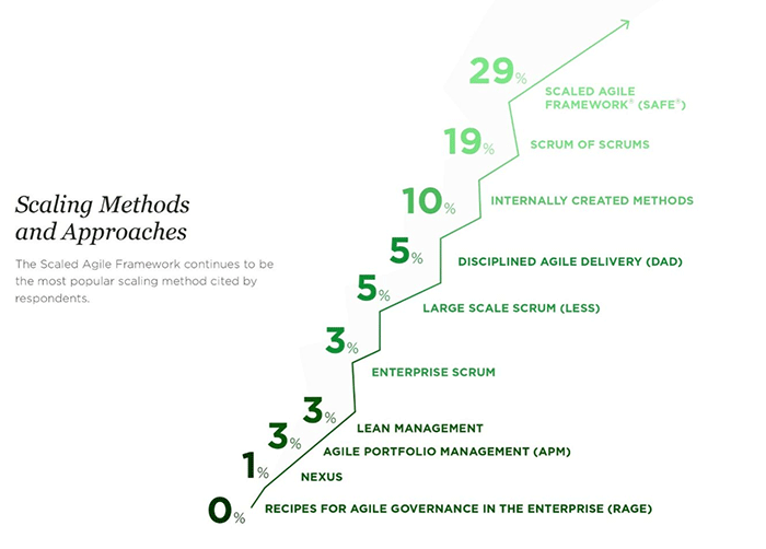 Auch wenn inzwischen die Auswahl der Skalierungs-Ansätze selbst etwas unübersichtlich wird, ist SAFe das derzeit beliebteste und am meisten verbreitete Skalierungs-Rahmenwerk.