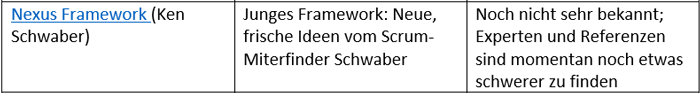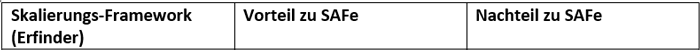 Natürlich gibt es neben SAFe eine ganze Reihe Wettbewerber, die jeweils unterschiedliche Schwerpunkte haben. Der folgende Vergleich zeigt die wesentlichen Unterschiede: