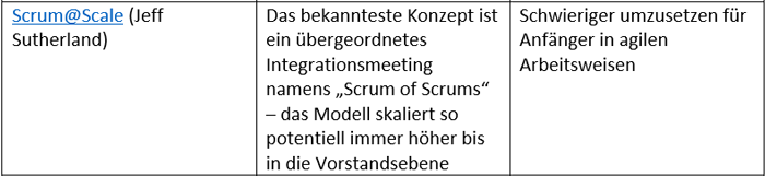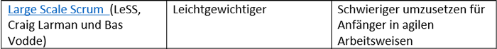 - Andere Skalierungsansätze, wie etwa LeSS, sind schlanker gestaltet und näher an agilen Grundprinzipien.