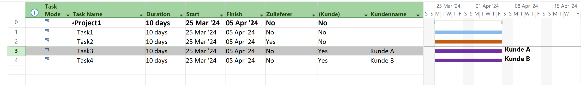So wie es im Gantt-Diagramm angezeigt wird: