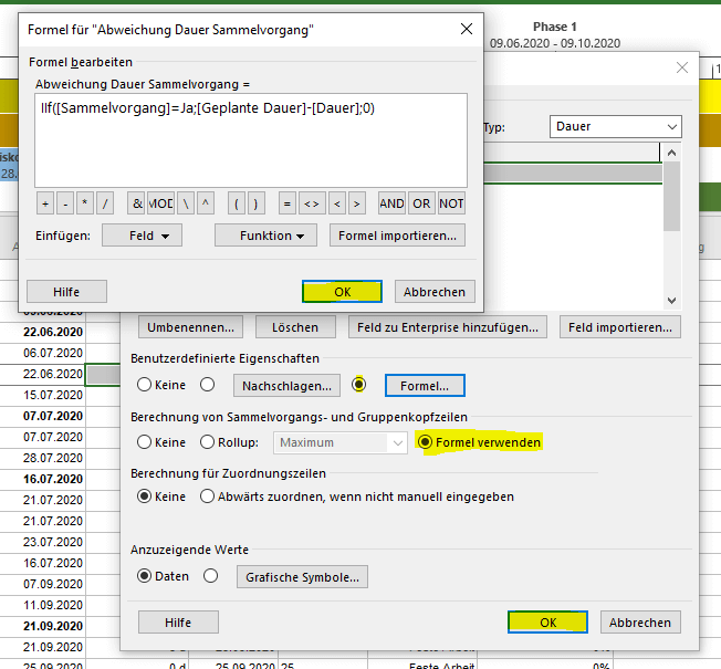 Formel für benutzerdefiniertes Feld in MS Project erstellen