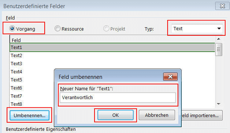 Feldtyp auswählen und umbenennen