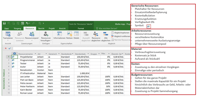 Zu Beginn der Projektplanung ist möglicherweise noch nicht klar, welche namentlichen Ressourcen Bestandteil Ihres Projektteams werden. Durch den Einsatz von generischen Ressourcen haben Sie die Möglichkeit, vorab Ihren Ressourcenbedarf zu evaluieren.