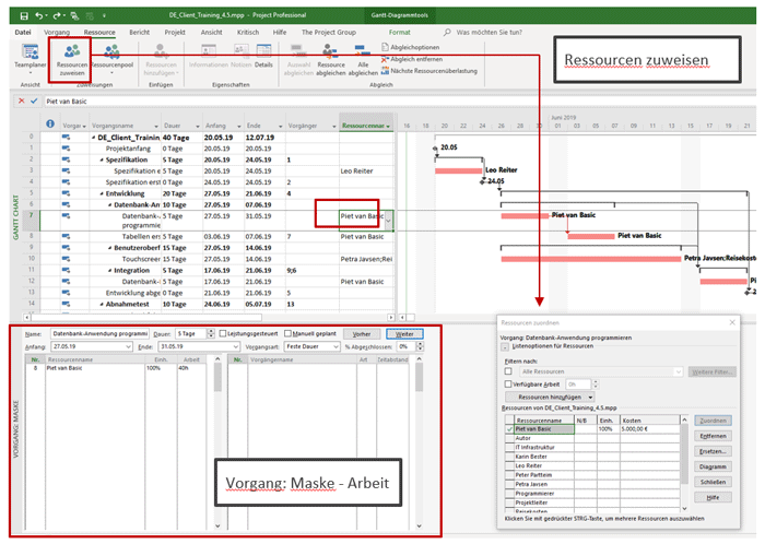 - Ressourcen definieren und auf Vorgänge zuweisen