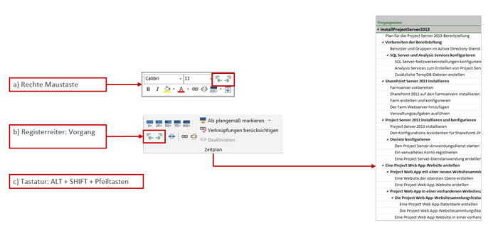 - Vorgänge und Meilensteine anlegen, terminieren und strukturieren