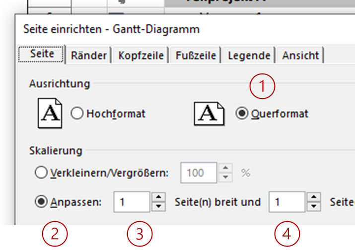 Um Projektpläne in Microsoft Project richtig zu drucken, gibt es neben der Option „Seite einrichten“ noch weitere Einflussmöglichkeiten. Gehen Sie wie folgt vor: