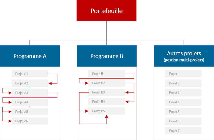 Note : Différents pays ont différentes définitions de la gestion de programme et de la gestion multi-projets. Parfois les termes gestion de programme et gestion de portefeuille peuvent être utilisés pour parler de la gestion multi-projets, ce qui peut prêter à confusion.