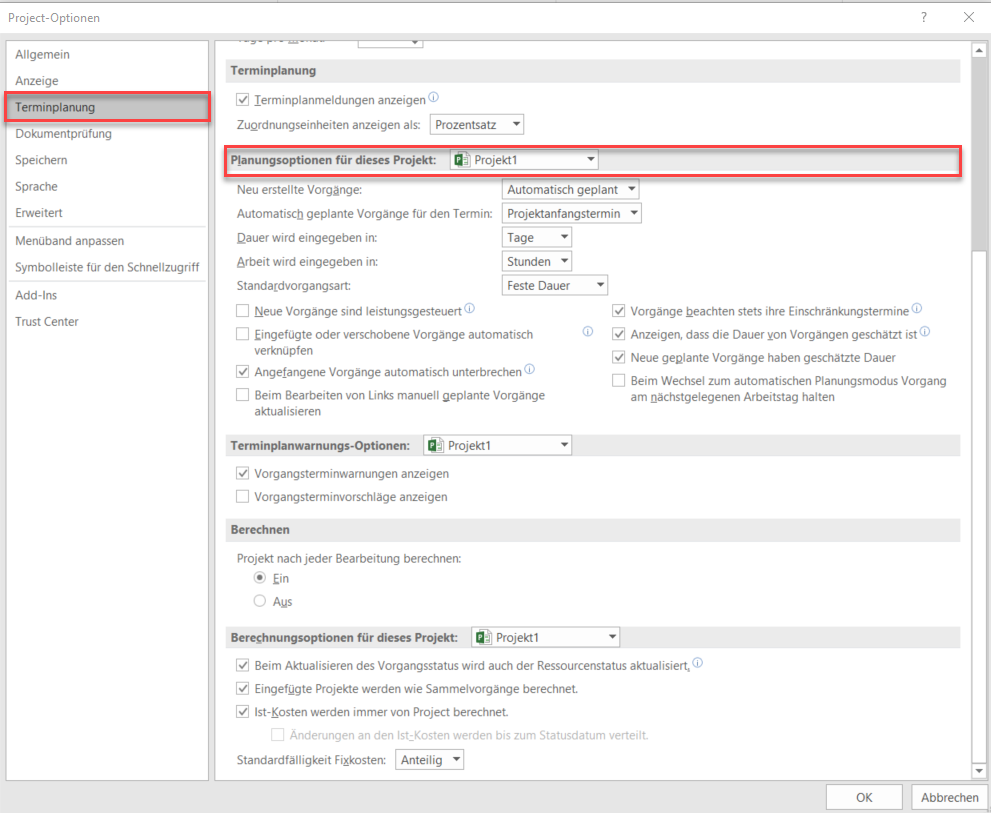 - Wenn Sie die Berechnungsergebnisse und das Verhalten von MS Project in Ihrem Projekt nachzuvollziehen möchten, dann sollten Sie wissen, welche Planungsoptionen hierfür eingestellt sind.