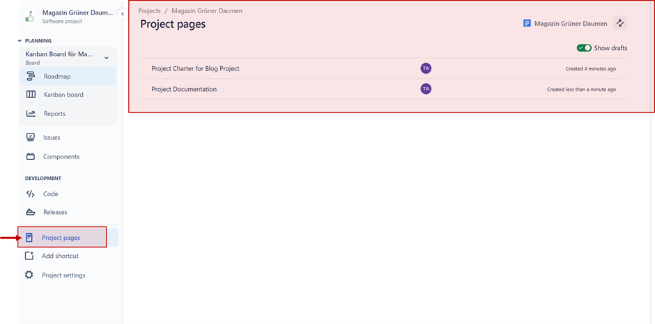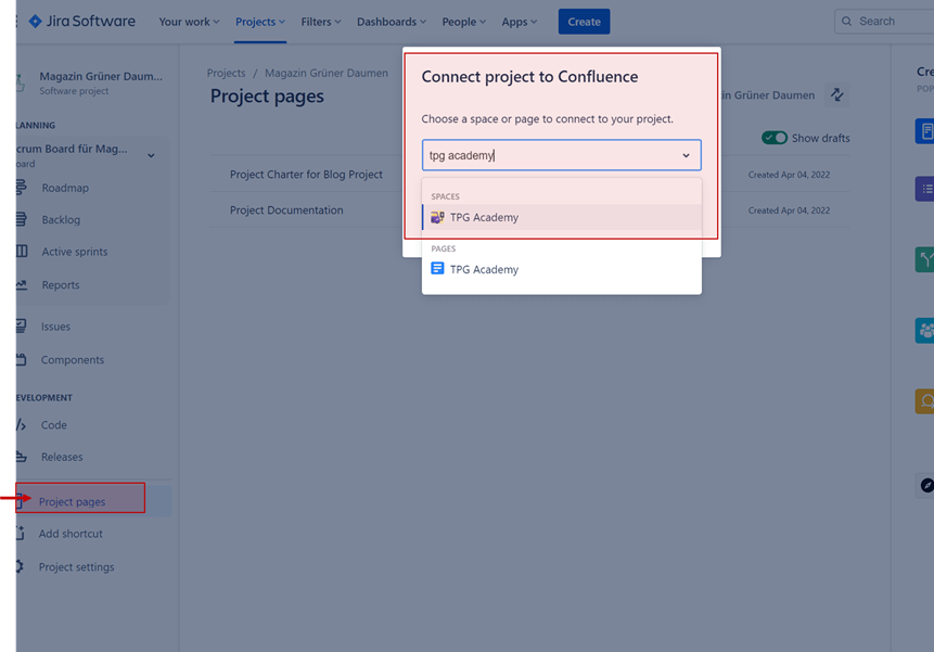 So gehen Sie dabei vor: Erstellen Sie einen eigenen Confluence-Space für Ihr Projekt und darin eine Seite nach einer der verfügbaren Vorlagen. Dann können Sie in Jira diese Seite oder auch den gesamten Space verlinken.