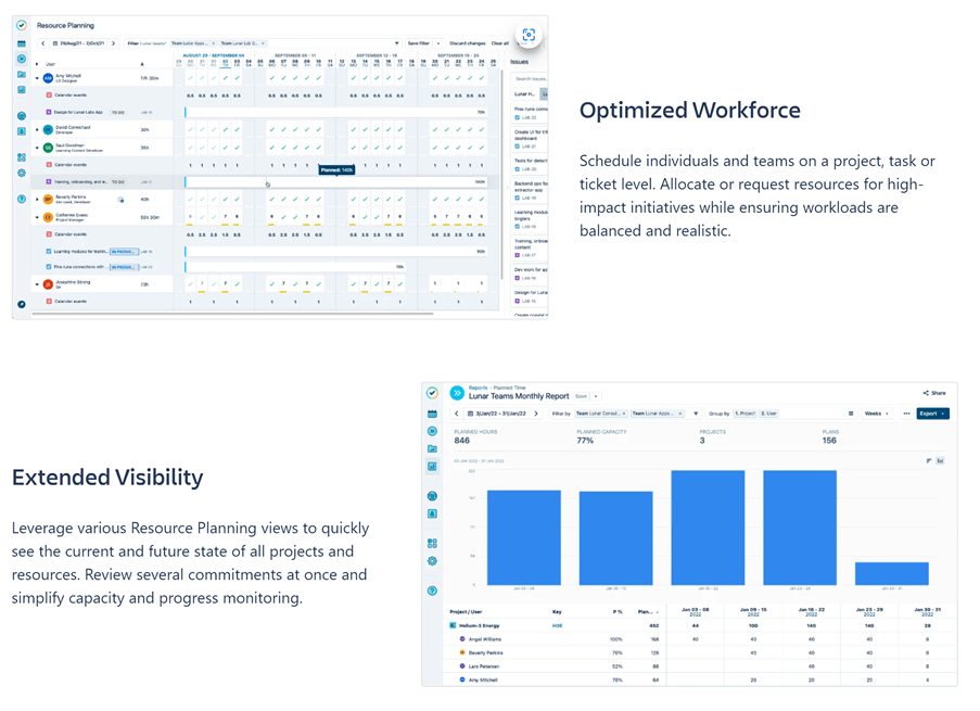 Beispiele wie das folgende finden Sie unter Tempo Capacity Planner | Atlassian Marketplace.