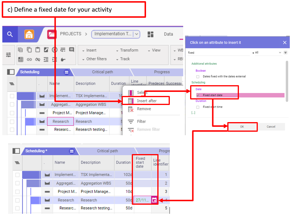 - c) Traiter les dates fixes et définir les contraintes.
