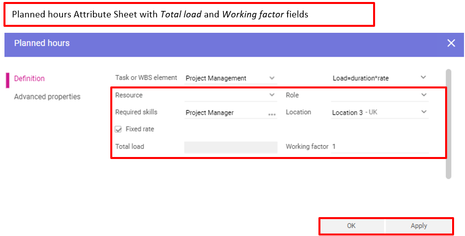Si un taux horaire est géré pour la ressource planifiée (générique ou nominative), la prévision des coûts de main d’œuvre sera automatiquement calculée sur la base des heures planifiées.