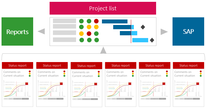 Appropriate reports and a good reporting process are the backbone of project controlling. These enable you to systematize regular communication in projects. Automated project management reports provide you with a repeatable format for populating reports with data quickly at the push of a button. They enable the efficient support of the entire project life cycle and optimal control of projects.