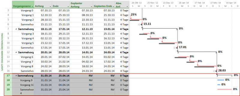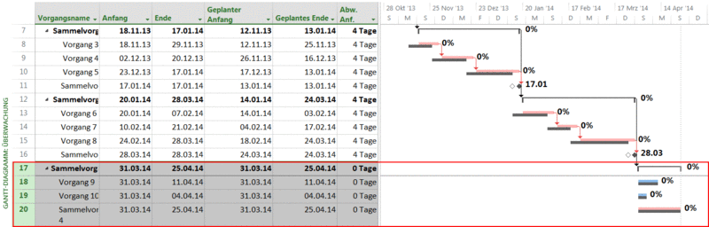 Markieren Sie die neuen Vorgänge bzw. das neue Arbeitspaket.