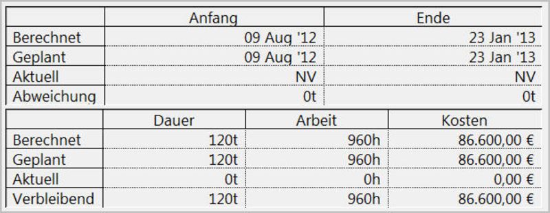 Hinweis: Basisplanwerte werden in Microsoft Project mit der Bezeichnung „Geplant“ gekennzeichnet, sprich Geplanter Anfang, Geplantes Ende, Geplante Dauer, Geplante Arbeit, Geplante Kosten, usw.