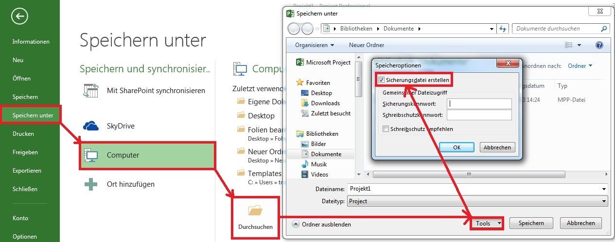 - Anlegen von Sicherheitskopien in MS Project