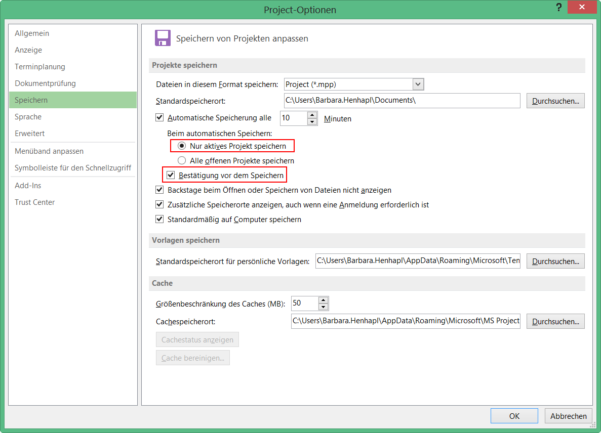 - Automatisch Speichern in MS Project aktivieren