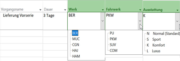 - Variante 2: MS Project Nachschlagetabelle / Auswahlliste für Felder anlegen