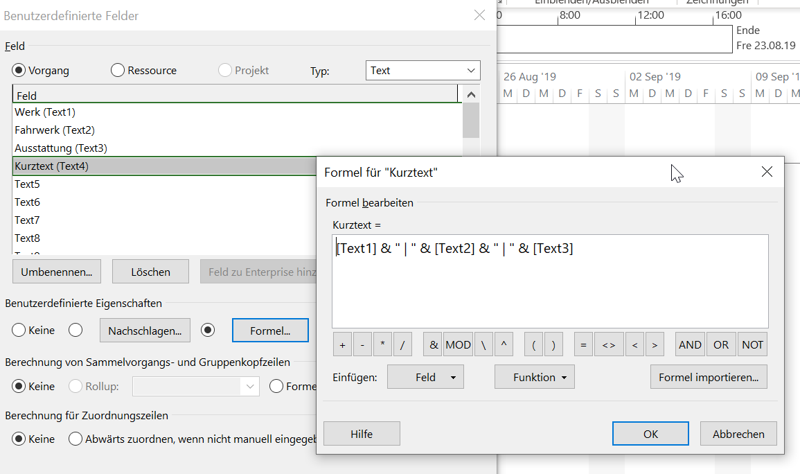 Formel für benutzerdefiniertes Feld in MS Project erstellen