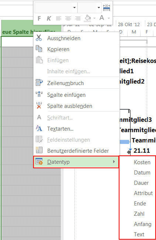 Profitipp: Sie können auf ähnliche Art und Weise Spalten mit anderen Datentypen erstellen (siehe Bild 4.). Am sichersten wählen Sie vorher den Datentyp aus dem Kontextmenü des Spaltentitels mit der rechten Maustaste aus.