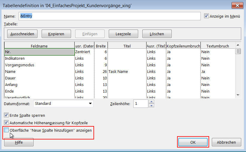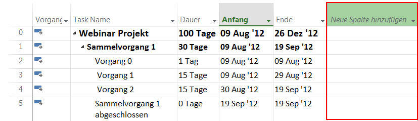 In diesem Tipp haben Sie gelernt, wie Sie die nützliche Spalte Neue Spalte hinzufügen, die seit der Version Microsoft Project 2010 verfügbar ist, in eine benutzerdefinierte Tabelle (wieder) einblenden können.