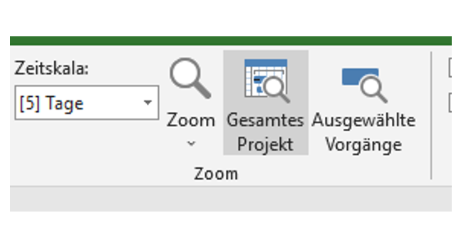 Tipp: Wenn Sie die richtige Ansicht gefunden haben, rücken Sie den Balkenplan in die optimale Ansicht. Klicken Sie dazu auf „Ansicht“ > „Gesamtes Projekt“.