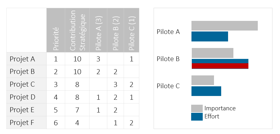 Ainsi, vous sélectionnez les projets promettant les meilleurs résultats par euro dépensé. Dans le même temps, tous les projets sélectionnés doivent également être alignés sur la stratégie de l’entreprise.