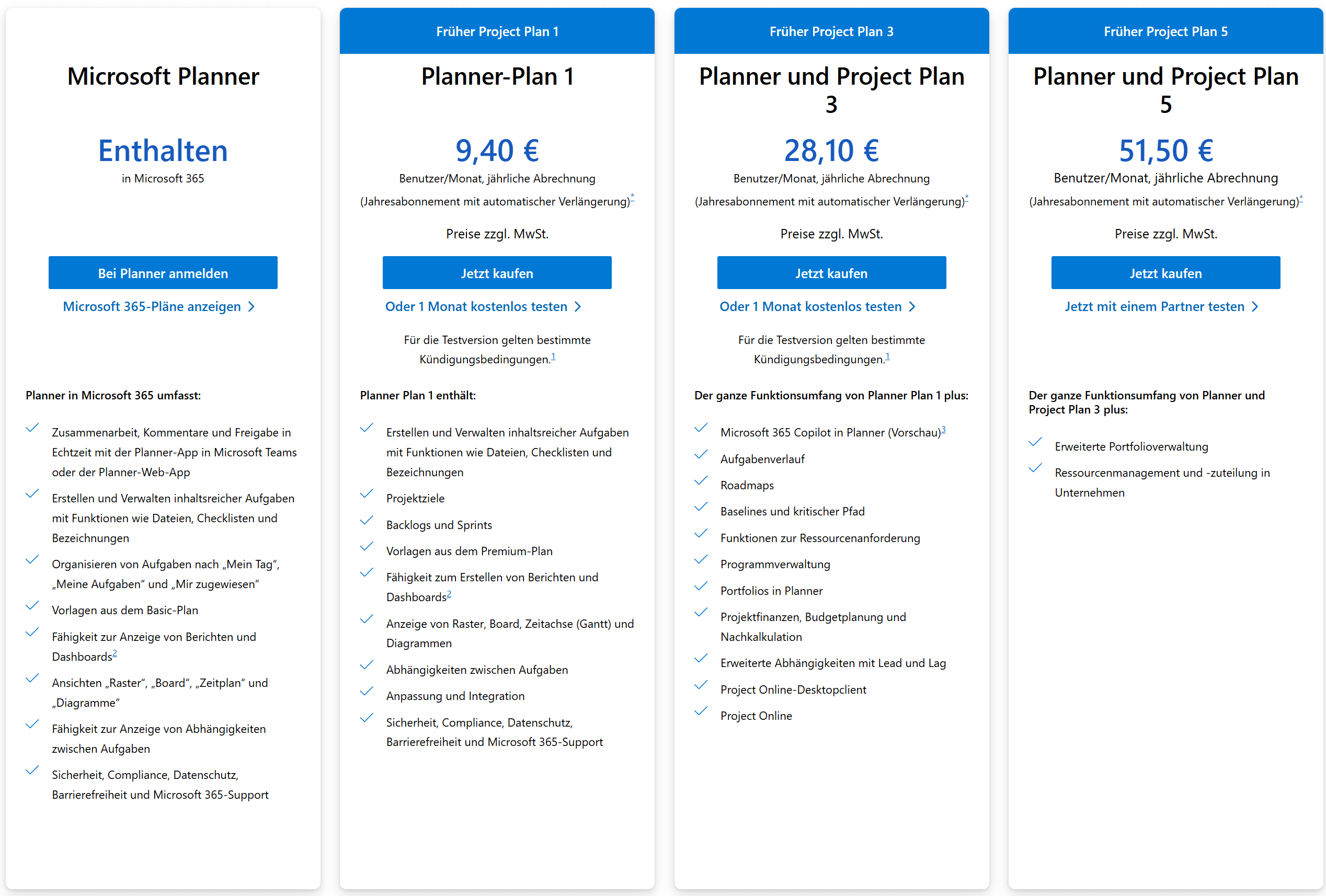 - Project Plan 1 → Planner Plan 1 (~10 US-$ / Nutzer / Monat)