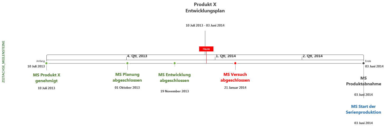 Nun soll es Ziel sein, für den Managementbericht eine weitere Zeitachse nur mit Meilensteinen und einer etwas anderen Gestaltung anzulegen. Dafür müssen Sie vorgehen, wie folgt.